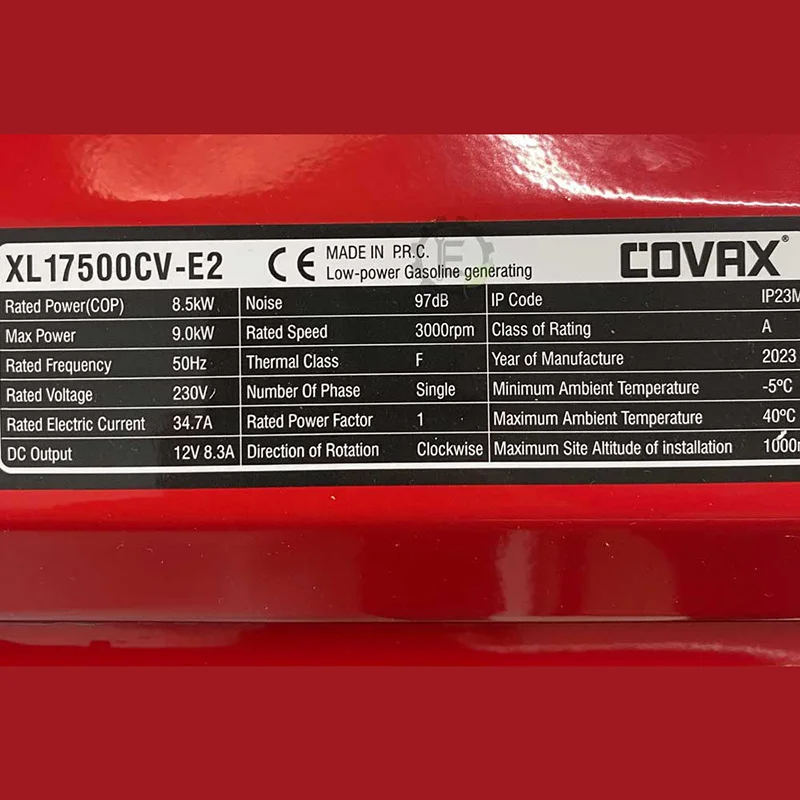 موتور برق 9 کیلووات کواکس مدل XL17500CV-E2، موتور برق قدرتمند بنزینی با توان استارتی 9000 وات و توان دائم 8500 وات مناسب بالابرها ساختمانی، جوشکاری تا 250 آمپر، تامین برق همزمان تمام وسایل 1 واحد مسکونی، مورد استفاده در باغ و و یلا می باشد. برای خرید موتور برق با تخفیف ویژه با واحد فروش موتور برق بازرگانی اعتصامی تماس حاصل نماید: 09130673930