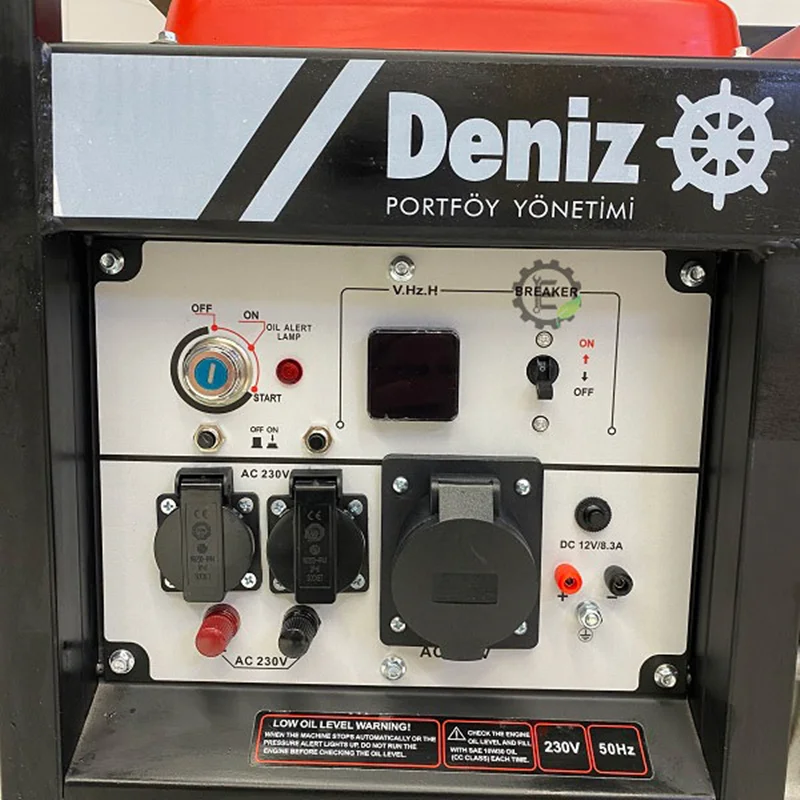 موتور برق دنیز 10000 دیزلی، دارای 2 عدد پورت خروجی 230 ولت معمولی و یک عدد خروجی صنعتی، 1 عدد پورت خروجی 12 ولت DC مناسب شارژ موبایل و لپ تاپ می باشد. قیمت موتور برق دنیز 10000، با توجه به سیم پیچ مس خالص، قدرت خروجی عالی، سنسور سطح روغن، تثبیت کننده ولتاژ AVR، نمایشگر میزان سوخت، طول عمر مفید بسیار مقرون به صرفه است.