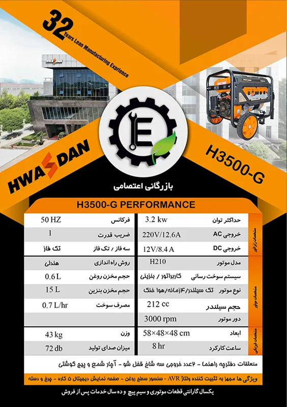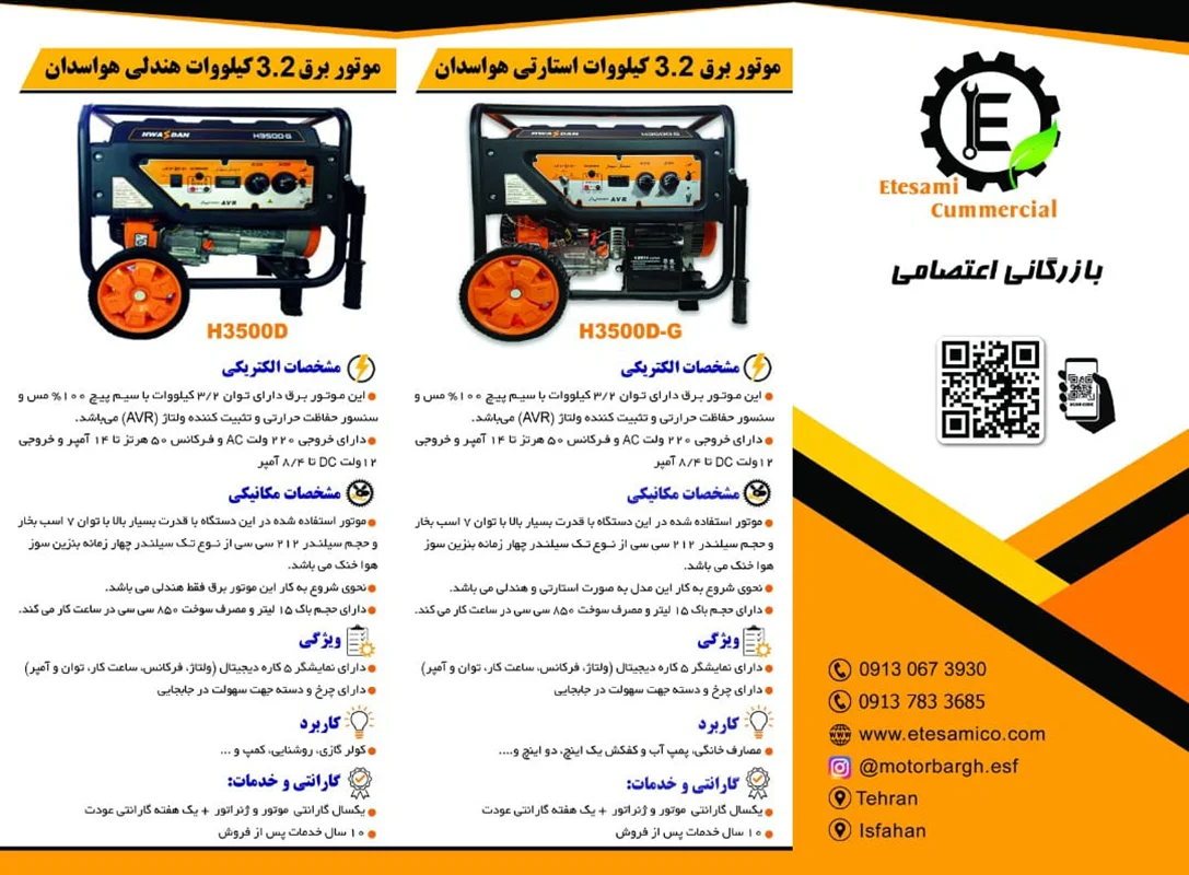 با خرید موتور برق هواسدان H3500-G از کیچک شاپ علاوه بر بهره مندی از تخفیفات ویژه ، تیم پشتیبانی فنی پاسخگوی سوالات شما هستند، تا بهترین و مناسب ترین خرید را داشته باشید. با خرید موتور برق 3500 هواسدان، از گارانتی یک ساله و 10 خدمات پس از فروش بازرگانی اعتصامی، بهره مند شوید. بازرگانی اعتصامی، فروشگاه آنلاین موتور برق هواسدان در سراسر کشور می باشد. موتور برق هواسدان، یکی از بهترین برندهای موتور برق چینی موجود در بازار می باشد.
