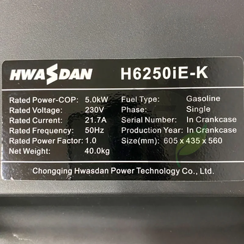 موتور برق هواسدان H6250IE-K با سیم پیچ مس خالص، توان استارتی 5.5 کیلو وات و توان دائم 5 کیلو وات از سری موتور برق های اینورتر می باشد. این موتور برق با کیفیت برای مصارف خانگی، جوشکاری اینورتر، تجهیزات حساس به نوسان برق(لب تاپ،کامپیوتر، پهباد، دستگاه های بیمارستانی و آزمایشگاه) استفاده می گردد. موتور برق سایلنت هواسدان 6250 دارای 2 عدد خروجی 230 ولت AC با فرکانس 50 هرتز و آمپر 21.7 ثابت می باشد.