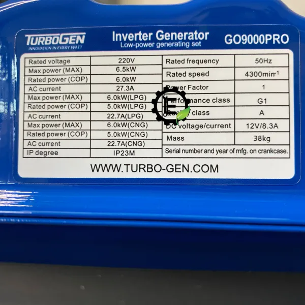 مشخصات فنی موتور برق توربوژن GO9000PRO