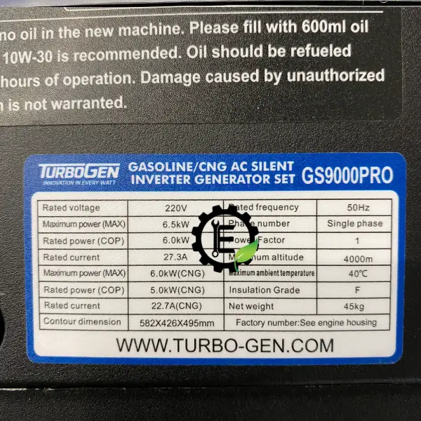 جدول مشخصات موتور برق توربوژن سهگانهسوز مدل GS9000PRO