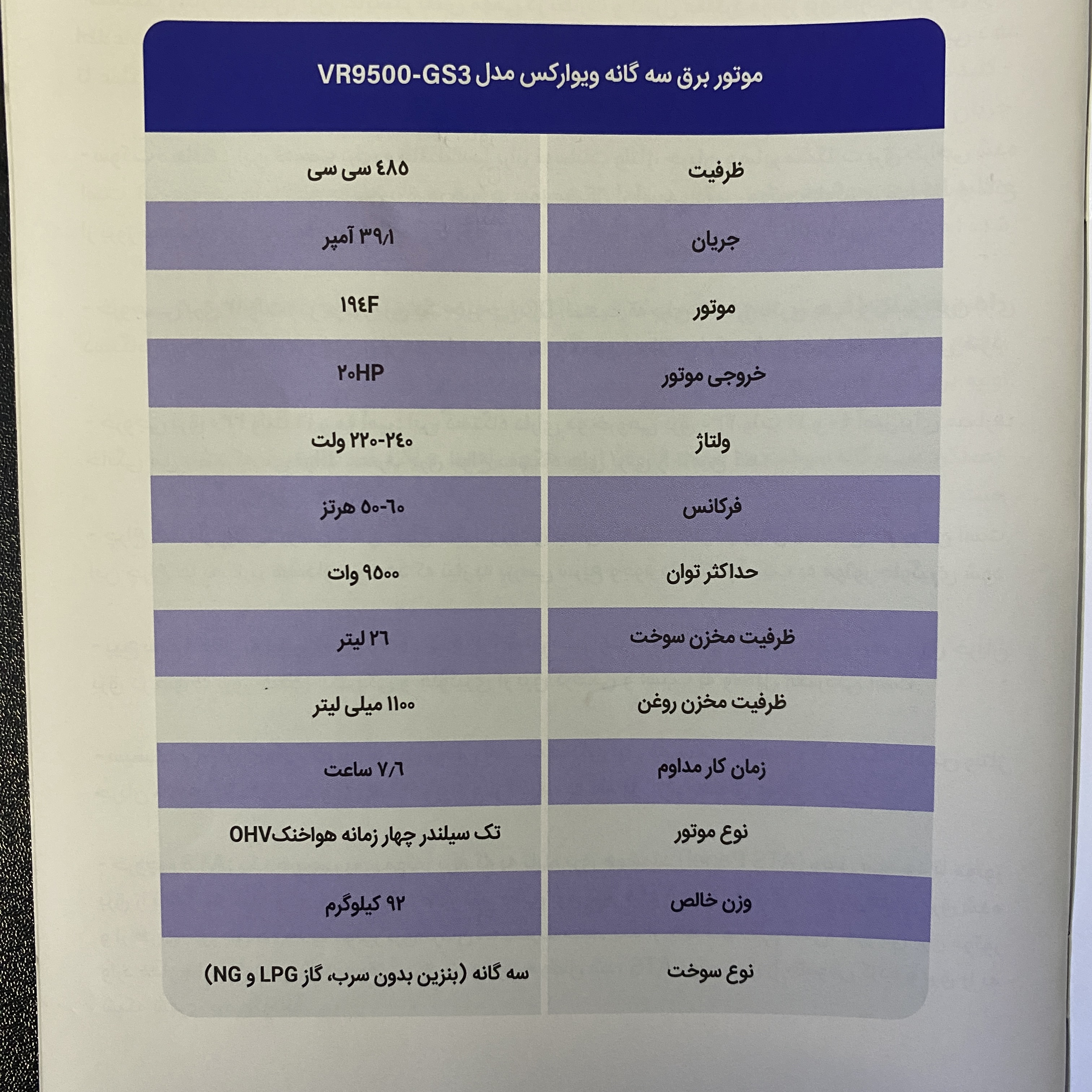 مشخصات فنی موتور برق ویوراکس VR9500-GS3